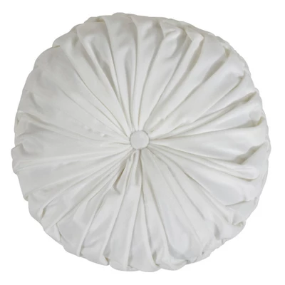 14″ Velvet Pintucked Poly Filled Round Throw Pillow White – Saro Lifestyle