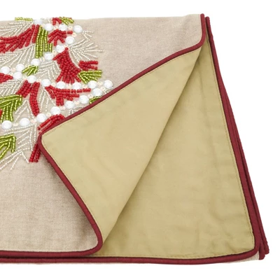 Add a cheerful note to your tabletop with this stunning beaded table runner. Featuring an ornate beaded Christmas tree design to bring the ideal festive touch for your holiday table. This table runner serves as a stylish and chic foundation to you place settings. Pair with solid placemats or napkins for a cohesive and complete look.