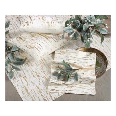 A unique distressed design gives this stylish cotton table runner an ultra glam appeal. The Distressed Foil Print Table Runner is perfect to dress up your tablescape for a special occasion or celebration, without overreaching. Pair with metal charger plates and solid color dinnerware to achieve a coordinated, balanced look.