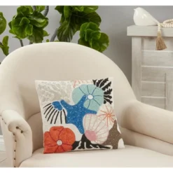 Saro Lifestyle Embroidered Succulents Decorative Pillow Cover, Multi, 18″