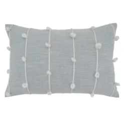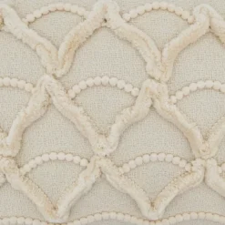 Saro Lifestyle Pom Pom Applique Decorative Pillow Cover, Ivory, 12″x18″