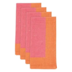 Saro Lifestyle Color-Blocked Edge Napkin (Set Of 4), Pink, 20″x20″