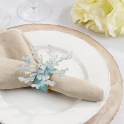 Saro Lifestyle Beaded Enchanted Bloom Resin Napkin Ring (Set Of 4)