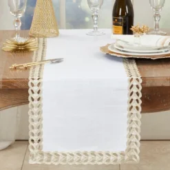 Saro Lifestyle Braided Bliss Border Table Runner, Gold, 16″x72″