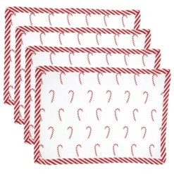 Saro Lifestyle Candy Cane Placemat, 14″x20″ Oblong, Red (Set Of 4)