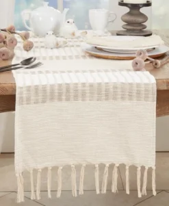 Saro Lifestyle Classic Charm Stripe Table Runner, 16″x72″, Beige