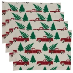Saro Lifestyle Christmas Trees Placemat, 14″x20″ Oblong, Gold (Set Of 4)