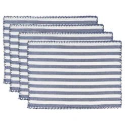 Saro Lifestyle Classic Striped Whipstitch Pom Pom Placemat (Set Of 4)