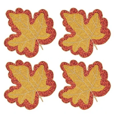 Add a touch of whimsy to your tabletop with this unique set of Beaded Leaf Design Placemats. Made with small, delicate glass beads that catch and reflect light, these gorgeous table mats instantly catch the eye and bring depth and dimension to every place setting. A lovely combination of orange and yellow, it’s easy to pair with fall colors in softer tones.
