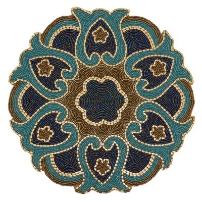 The Beaded Design Round Placemats are a unique addition to your table décor. Featuring an intricate cutwork design and contrasting glass beads in an ornate motif design. Darker shades of blue, brown and black create depth while strings of white beads create contrast and make the design pop. The set is perfect for special occasions and formal entertaining.