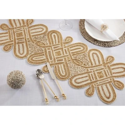 A lovely combination of modern shapes and more traditional glass beads construction, this stylish Beaded Design Table Runner brings depth and dimension to your décor. The glass beads catch and reflect light, so the runner also adds a glistening touch to your tabletop or any furniture for that matter, as it can be easily used as an always-on accent piece.