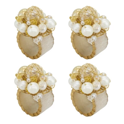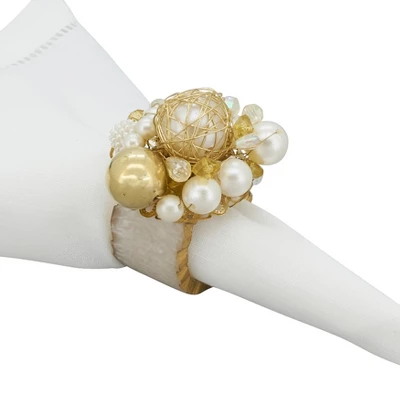 Elevate your table setting with this set of Beaded Napkin Rings. The intricate beaded design features clusters of gold-tone balls that add a touch of sophistication and luxury to your table. Made from high-quality materials, these napkin rings are perfect for adding a pop of texture and glam to your table setting. Ideal for formal dinners or any occasion, these napkin rings are sure to impress your guests and add a touch of elegance to your table.