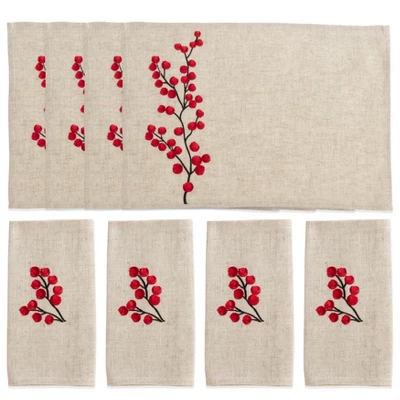 Bring nature’s touch into your home, and at your table with this gorgeous set of Embroidered Berry Placemats and Napkins. The delicate embroidery, and the vivid red add style and refinement to your tabletop. It’s perfect for hosting dinners all year round.