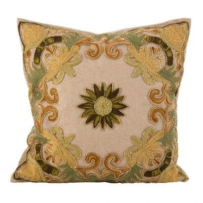 Featuring warm colors and tones, as well as delicate brocade, this gorgeous Embroidered Throw Pillow is truly unique. It brings a traditional touch to any décor and fills the space with intricate embroidery and rich design. It instantly livens up any space.