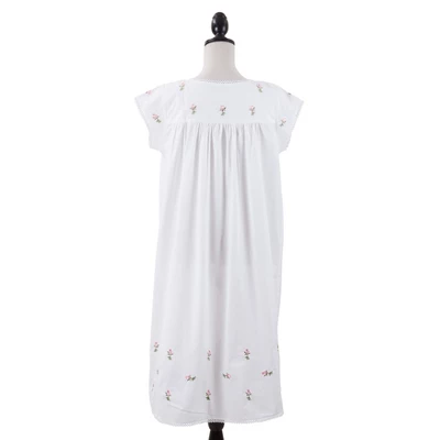 Beautiful and well-constructed from 100% cotton, this Embroidered Design Nightgown is very feminine and appealing. The cozy cool style is perfect for summer weather, as well as for vacationing. The white cotton nightgown is a lovely blend of comfort and elegance, with subtle details that bring the perfect finishing touch.
