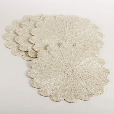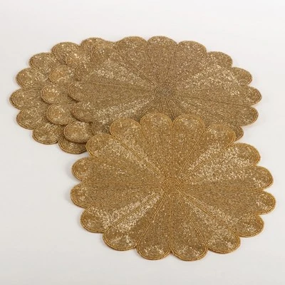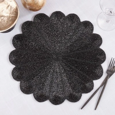 A beautiful beading technique shaped into a geometric bloom, these placemats bring elegance to your dining table. The glass beading gives a subtle shimmer peeking out from under your plate with a bit of playful sparkle. Indulge for your next special occasion and make a statement everyone will remember.