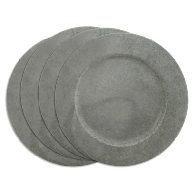 The galvanized finish of these charger plate will give your table settings a back-to-basics look. Each piece is hand distrssed, therefore no two pieces are alike. Sold in a set of 4 pieces.