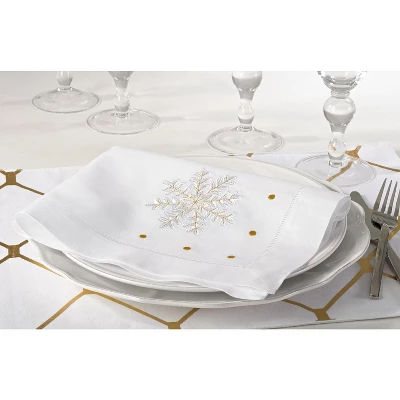 The beautiful Hemstitched Holiday Design Napkins bring a natural feel to your table, featuring a perfect blend of soft cotton and organic linen. The design boasts delicate embroidery to create a festive, cheerful table décor. You can easily pair the set with holiday-inspired table runners and place mats.