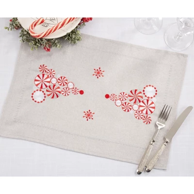 These gorgeous Peppermint Christmas Tree Placemats are a perfect combination of whimsy, joyfulness and refinement. Featuring a metallic finish that brings a sparkling touch to the tabletop, the placemats can be easily dressed up for special occasions and celebrations. Pair them with a matching table runner for a coordinated look.