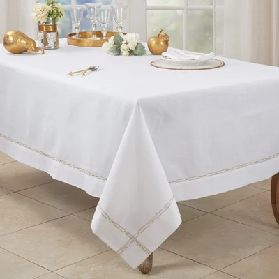 Make a statement at your next dinner party with this Embroidered Border Tablecloth! This elegant and versatile tablecloth features a delicate embroidered border, adding a touch of sophistication to any dining room. Whether you’re hosting a formal event or a casual gathering, this beautiful tablecloth is the perfect way to elevate your table setting.