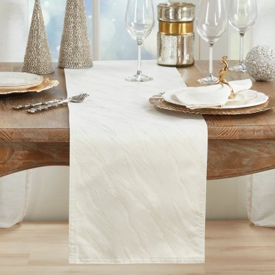 The Metallic Shimmer Table Runner is designed to complement any setting with style. A great accent for your everyday or seasonal table.