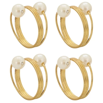 Delicate and fancy, but not opulent, this set of Double Pearl Napkin Rings is a great way to add elegance to your table décor without turning it into a too formal affair. It’s perfect for low key celebrations and special occasions. The yellow gold contrasts beautifully with the white pearls, creating a wow effect.