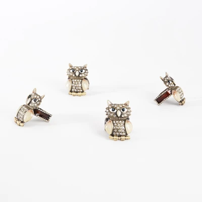 Crafted with beautiful details and textures, the Owl Napkin Rings bring a perfect balance between elegance and whimsy. They add an alluring sparkling accent to each place setting, which instantly catches the eye. The set is highly versatile, and can be pared down or dressed up depending on the occasion.