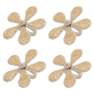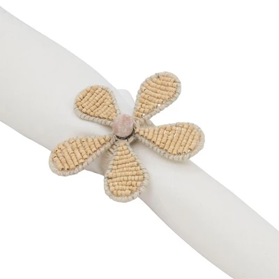 Perfect for linen table napkins and neutral tones, these Beaded Flower Design Napkin Rings are stylish and natural at the same time. The flower petals brings depth and dimension to the tabletop, while the wooden beads and cotton thread add texture. It’s a great way to elevate the look of a casual dining table.