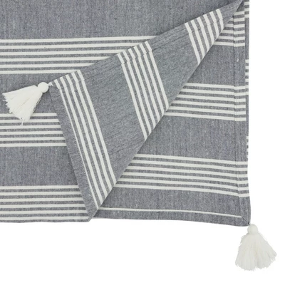 Casual and quite versatile, the tasteful Striped Design Tassel Table Runner is easy to pair and comes in handy for several occasions, from family dining to informal entertaining. You can dress it up or pare it down to create the perfect table setting. The runner is made with 100% cotton, which delivers great durability.
