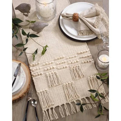 The Tassel Moroccan Table Runner is a quiet, durable piece crafted with 100% cotton. You can use it to create a natural, clean décor or pair it strong, contrasting pieces for a pop of color. It can easily suit a casual dinner and well as a chic garden bru