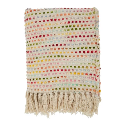 The Confetti Design Throw Blanket features a woven design that brings texture and dimension to your home and decor. It’s great for both indoor and outdoor use to keep you cozy all year round. The ends are finished with tasseled edges to complete the look.