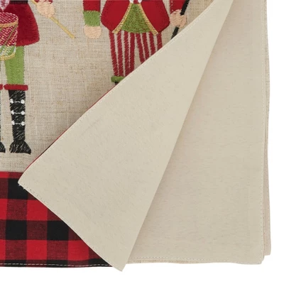 Celebrate the magic of the holiday season with this Nutcrackers Table Runner. Adorned with whimsical nutcracker motifs, it adds a festive and enchanting touch to your table. Crafted with care, this runner creates a joyful and inviting atmosphere, perfect for holiday gatherings and creating cherished memories.