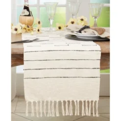 Saro Lifestyle Cotton Table Runner With Dash Line Design, 16″x72″, Off-White