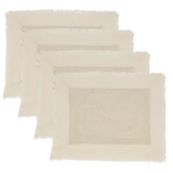 Saro Lifestyle Double Layered Fringe Placemat (Set Of 4), 14″x20″, Beige