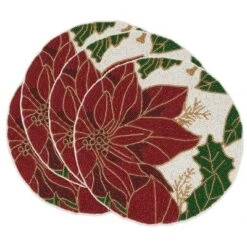 Saro Lifestyle Intricate Beaded Poinsettia Placemat (Set Of 4), 14″, Multicolored