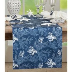 Saro Lifestyle Leno Stripe Elegance Table Runner, Blue, 13″x72″