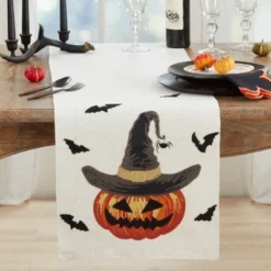 Saro Lifestyle Linen Blend Pumpkin Table Runner, 16″x70″, Natural