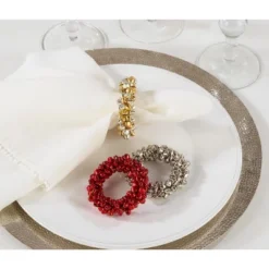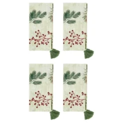 Saro Lifestyle Pine Needle And Red Berry Design Holiday Table Napkins (Set Of 4)