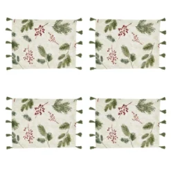 Saro Lifestyle Pine Needle And Red Berry Design Holiday Placemats (Set Of 4)
