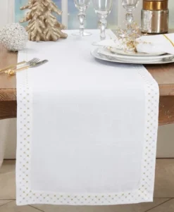 Saro Lifestyle Shimmering Weave Metallic Lattice Table Runner, 16″x72″, White