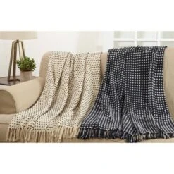 50″x60″ Throw Blanket Off White – Saro Lifestyle: Cozy Polyester Basket Weave, Hand Washable
